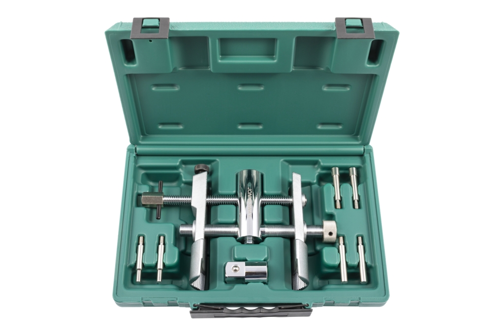 Klucz posiada nastawne szczęki z możliwością blokowania na 6-kt. i 8-kt. nakrętkach. Zastępuje około 30 różnych rozmiarów nasad do nakrętek piast.