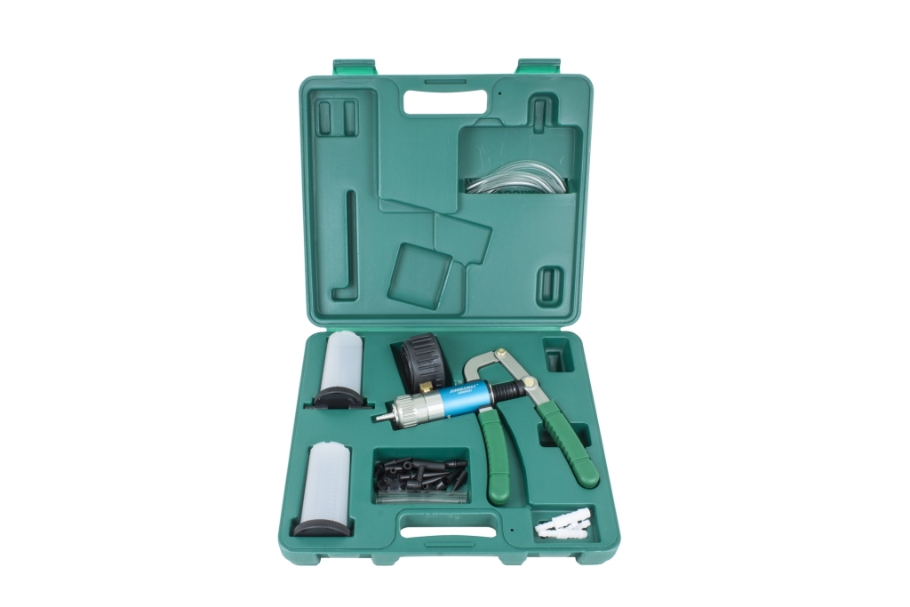 Podwójna (ciśnieniowa i podciśnieniowa) pompka z zestawem do odpowietrzania i wymiany płynu hamulcowego.