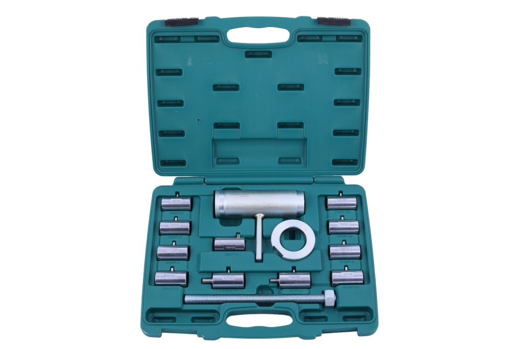 Do montowania wału korbowego w większości silników jednocylindrowych. Zawiera tuleję montażową, podkładkę dystansową, śrubę oraz 11 adapterów w różnych rozmiarach. Rozmiary adapterów: M7x1 zewn / M10x1.25 / M10x1.25 zewn / M12x1.25 lewy / M12x1 / M12x1.5 / M14x1 / M14x1.5 / M16x1 / M18x1 / M22x1. Wszystkie adaptery wykonane są ze stali chromowo-molibdenowej.