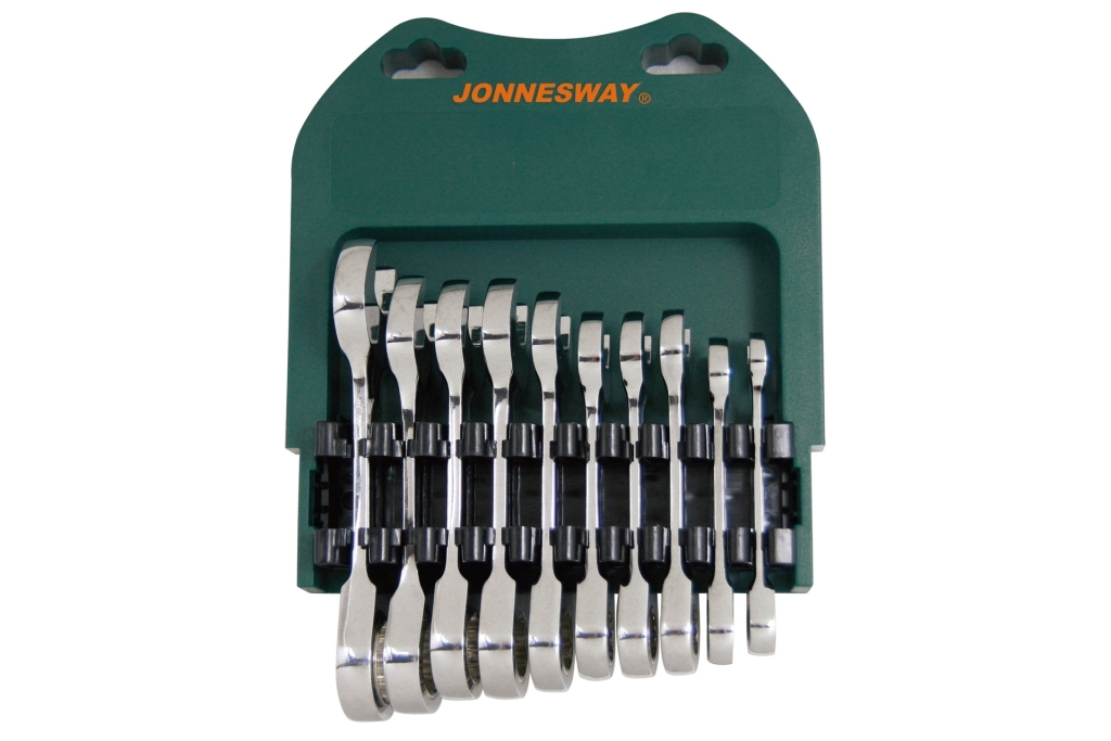 Zestaw 10szt. kluczy płasko-oczkowych krótkich z grzechotką 8-19mm