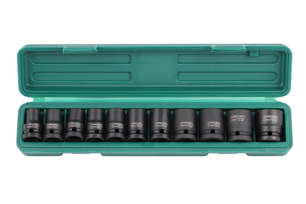 - 11 szt. nasadek udarowych 1/2" w rozmiarach: 10, 11, 12, 13, 14, 16, 17, 19, 21, 22, 24mm