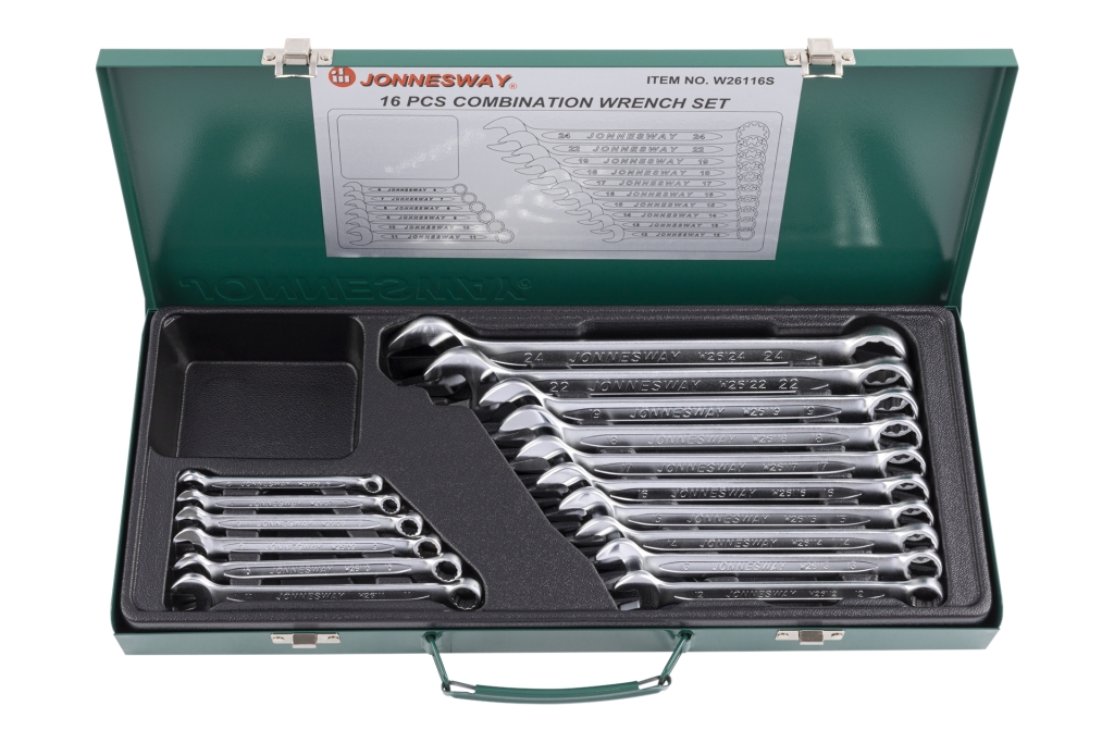 - W26 (16szt.) - klucze płasko-oczkowe w rozmiarach: 6, 7, 8, 9, 10, 11, 12, 13, 14, 15, 16, 17, 18, 19, 22, 24mm