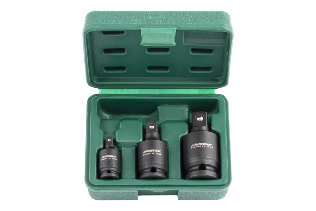 - 3 szt. przegubów kulowych udarowych: 1/4”F x 1/4”M, 3/8”F x 3/8”M, 1/2”F x 1/2”M