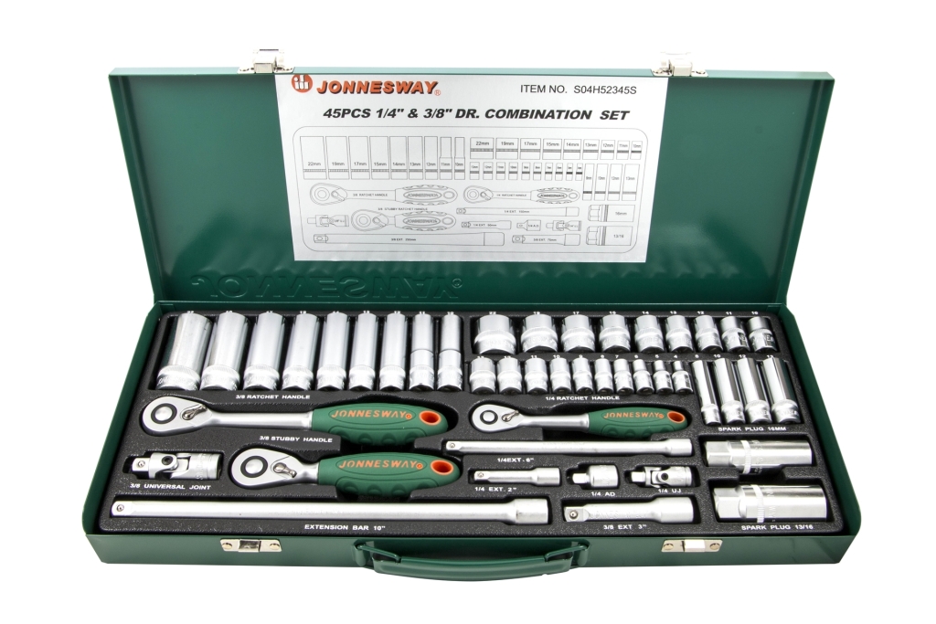 Zestaw 45szt. narzędzi 1/4" i 3/8"