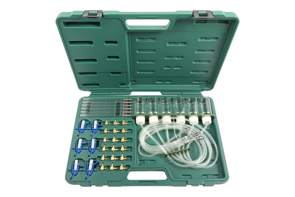 Przyrząd służy do szybkiego i efektownego pomiaru objętości paliwa na przelewie każdego wtryskiwacza. Umożliwia jednoczesny pomiar na 6 wtryskiwaczach.